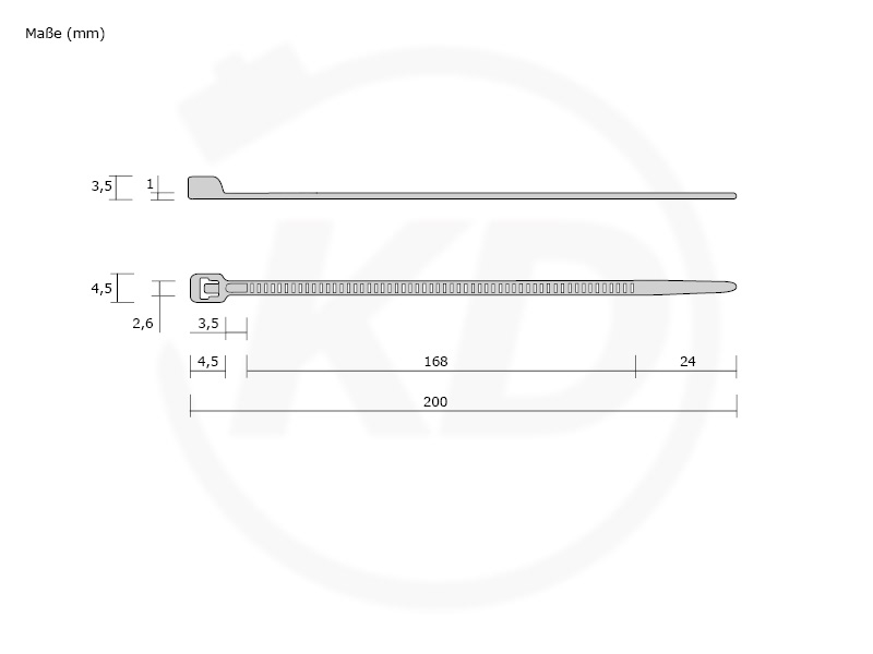 2.6 x 200 mm Kabelbinder, schwarz - genaue Maße2.6 x 200 mm Kabelbinder, schwarz - Bündeldurchmesser